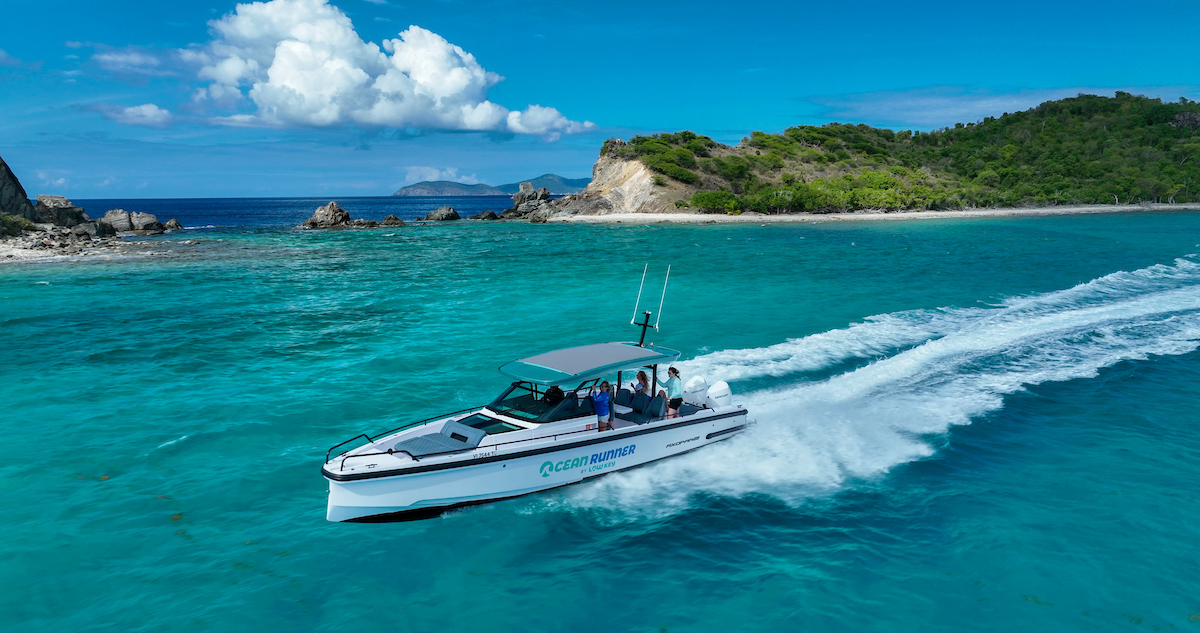 This boat includes amenities like snorkeling gear with floatation devices, a full cabin and bathroom. An insulated cooler will be stocked with ice, water, soda and beer. Her unique hull provides an exceptionally smooth ride. Match that with her twin Mercury engines with combined 600hp and you will be cruising in style to any destination.
