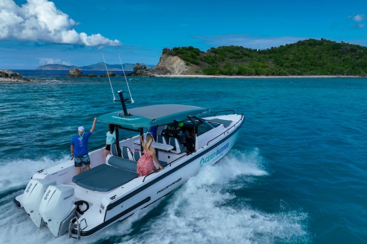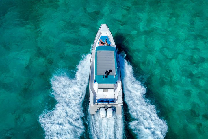 The Axopar charters are made up of our three boats: Island Escape, Island Soul, and Lana’s Revenge. Island Escape features a wet bar with a mini fridge while Island Soul and Lana’s Revenge feature a second lounging sunbed at the rear of the boat.